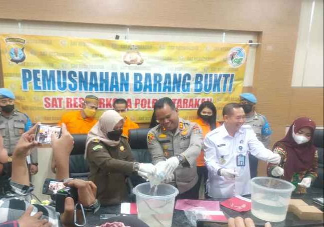 TARAKAN - Barang bukti hasil dua pengungkapan peredaran sabu dengan berat total…