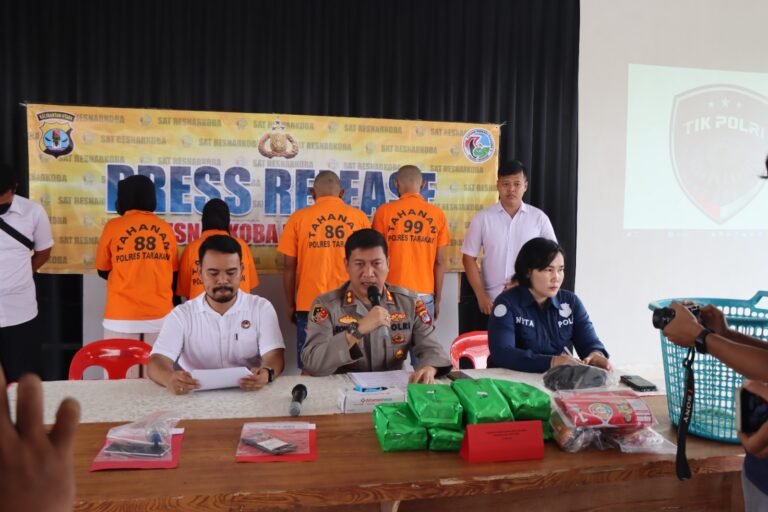 TARAKAN - Satuan Reserse Narkoba (Satresnarkoba) Polres Tarakan melaksanakan konferesnsi perss terkait…