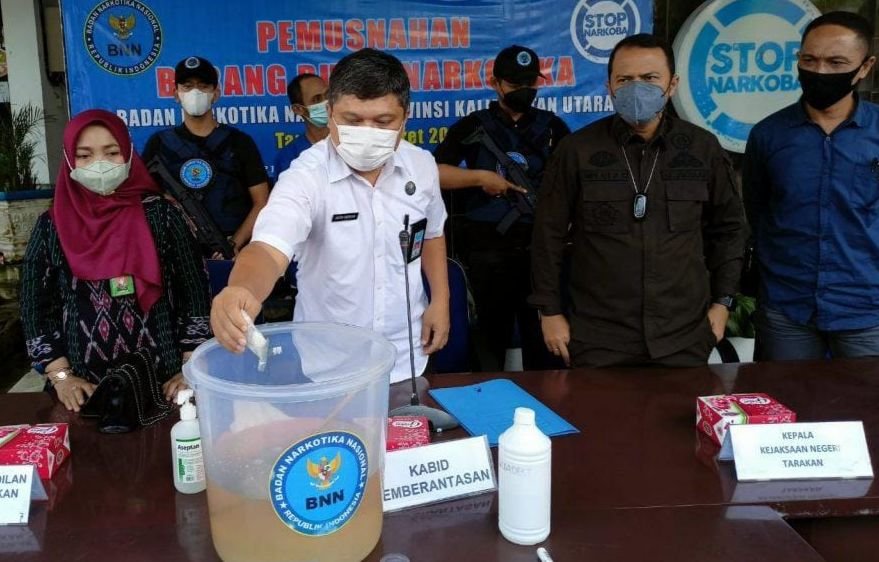 Dengan demikian, barang bukti sabu tersebut langsung dimusnahkan bersama unsur Forkopimda yang turut menyaksikan. Di antaranya Kejaksaan Negeri Tarakan, Polres Tarakan, Kepala Pengadilan Negeri Tarakan dan pihak dari J&T.