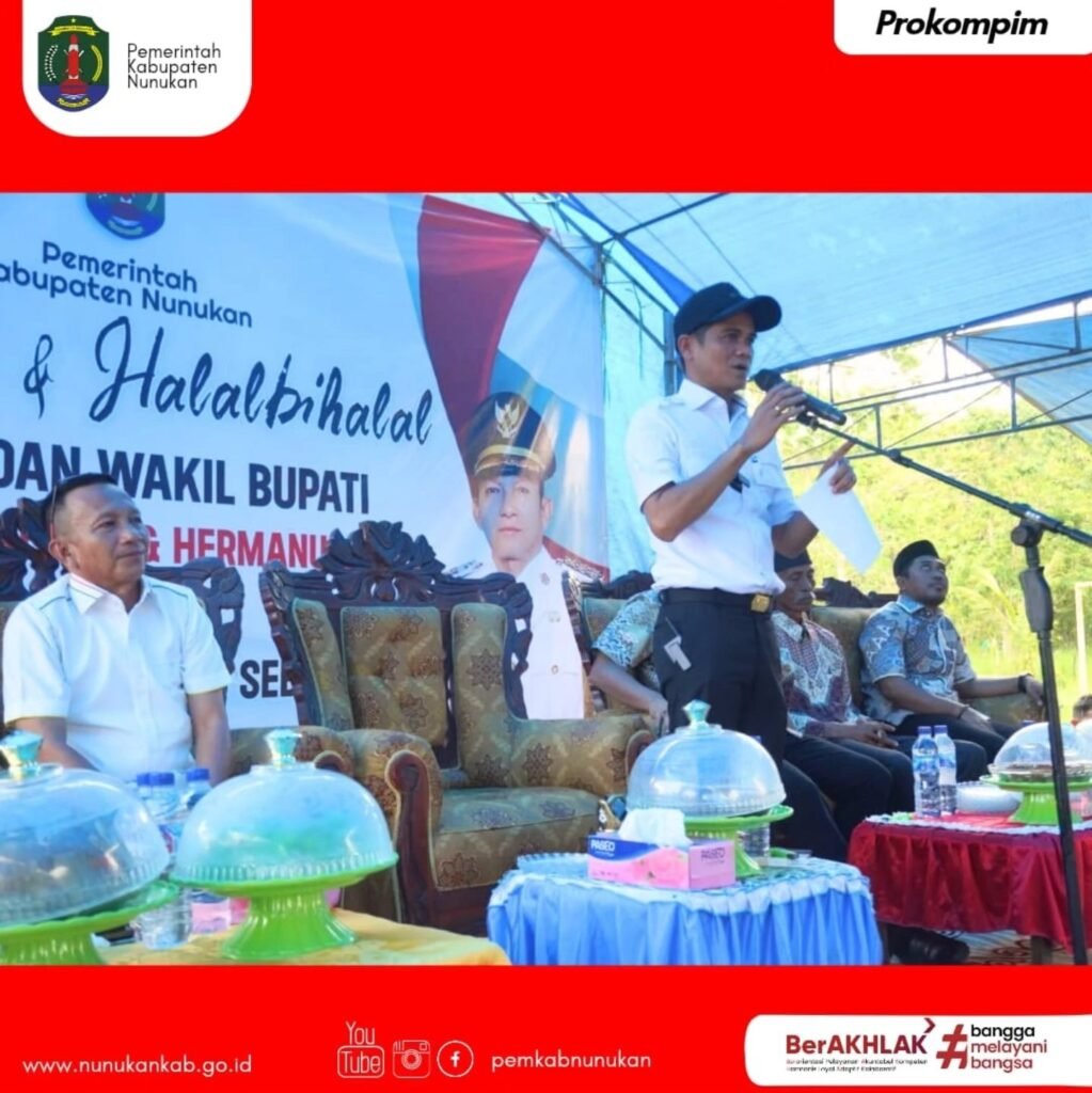 Dalam sambutannya, Bupati Irwan menyampaikan rasa syukur dan kebanggaannya bisa hadir langsung di tengah masyarakat Pulau Sebatik. Ia juga mengucapkan Selamat Idul Fitri 1446 H dan permohonan maaf lahir batin kepada seluruh warga yang hadir.
