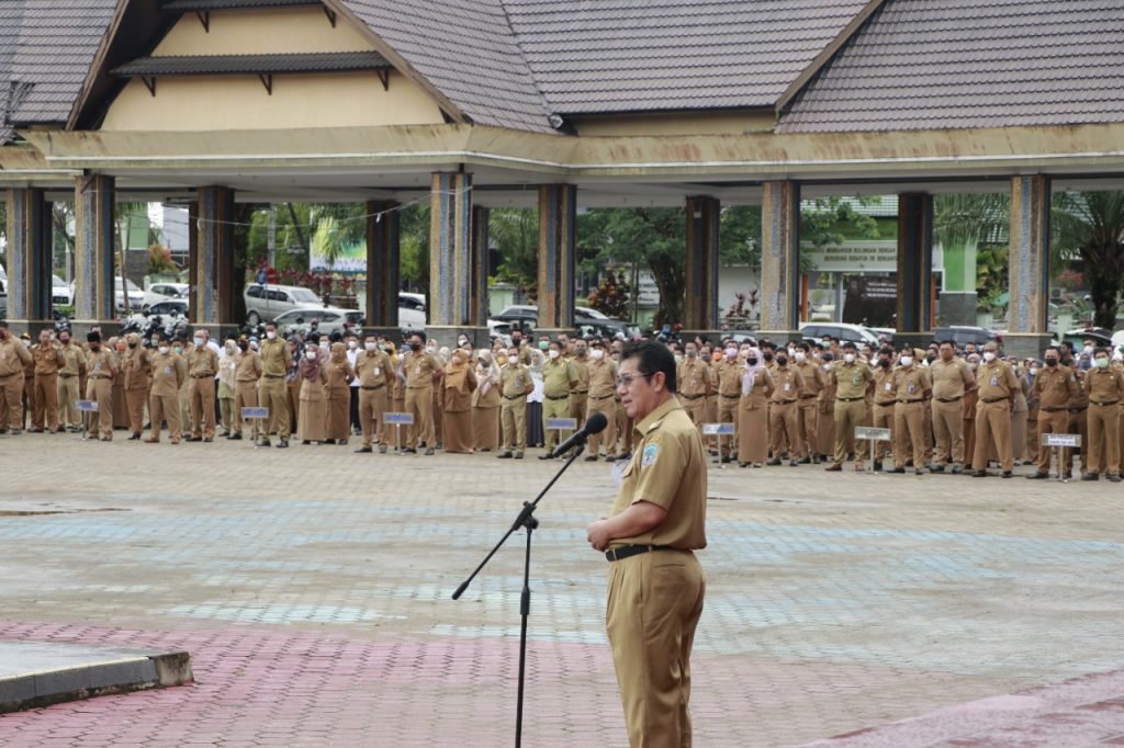 TANJUNG SELOR – Wakil Gubernur (Wagub) Kalimantan Utara (Kaltara) Yansen TP memimpin apel gabungan pasca cuti bersama Idulfitri 1443 H di lingkungan Pemerintah Provinsi Kaltara, Senin (9/5/2022).