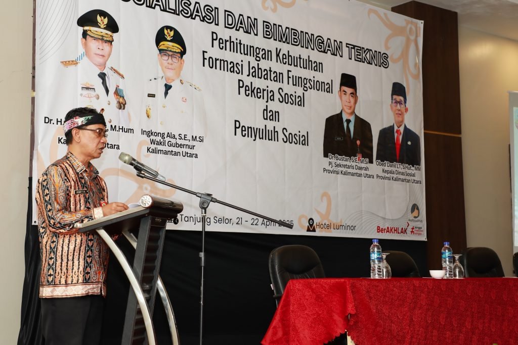 TANJUNG SELOR – Gubernur Kalimantan Utara (Kaltara) diwakili Staf Ahli Bidang Hukum, Kesatuan Bangsa, dan Pemerintahan Setdaprov Kaltara Robby Yuridi Hatman, S.Sos., M.T membuka acara Sosialisasi Dan Bimbingan Teknis (Bimtek) Perhitungan Kebutuhan Formasi Pekerja Sosial Dan Penyuluh Sosial di Hotel Luminor, Selasa (22/4/25).