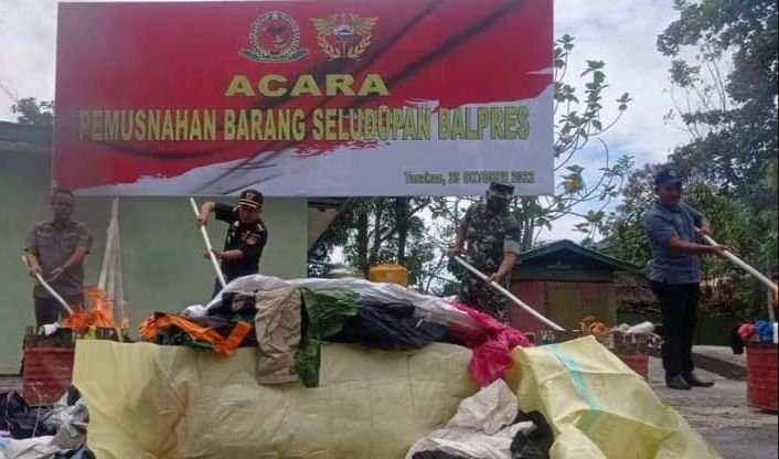 TARAKAN – Sebanyak 32 bal pakaian bekas (Balpres) ilegal tak bertuan diamankan Kodim 0907 Tarakan, di galangan kapal RT.12 Juata Laut dengan kondisi tak bertuan pada 8 Oktober 2022. Pasca ditemukan, puluhan Balpres itu dimusnahkan bersama Bea Cukai Tarakan, (25/10/2022) kemarin.