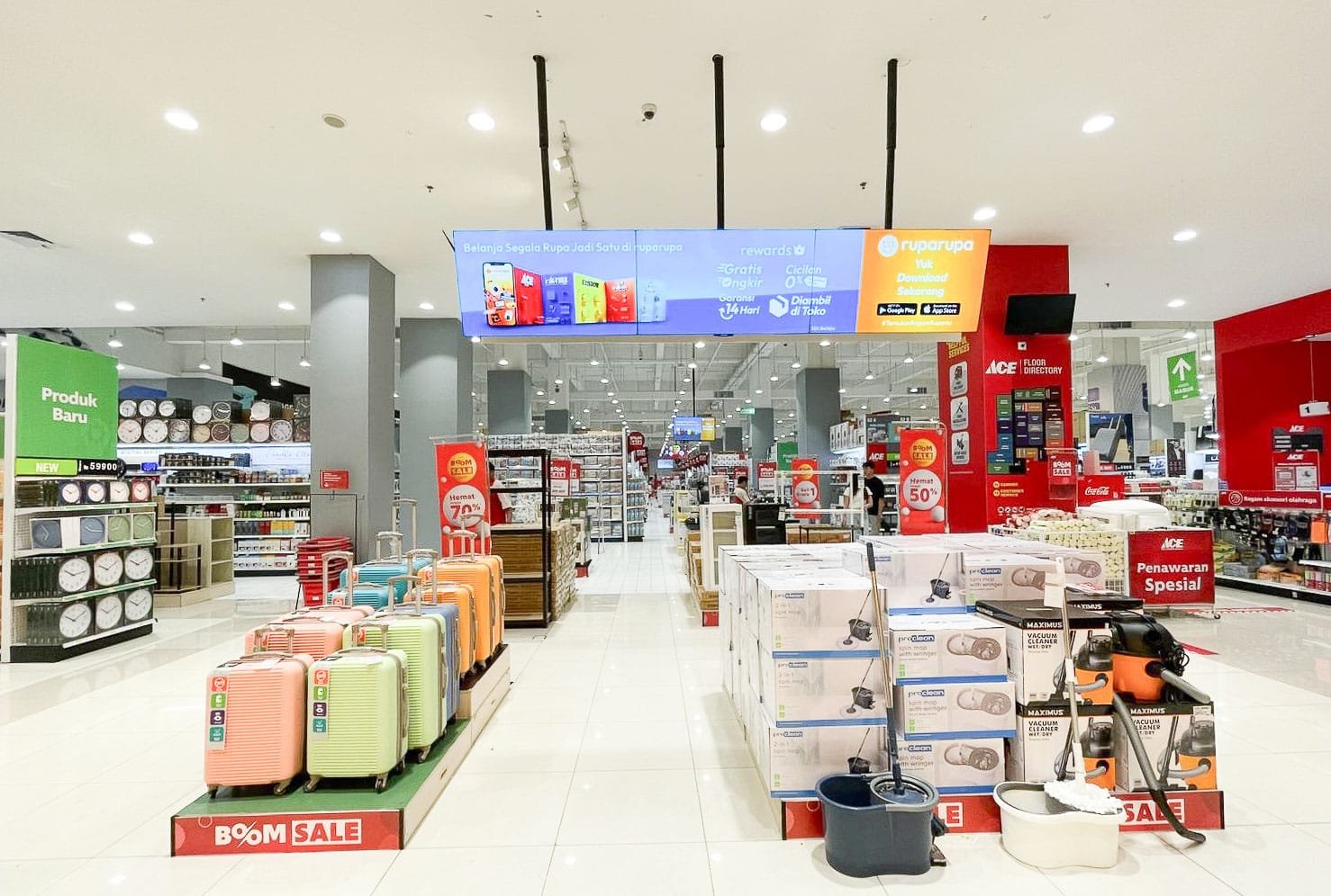 Selain menawarkan ragam produk berkualitas, ACE BOOM SALE hadir hingga 6 Agustus 2024 untuk membuat pelanggan #BisaLebihHappy dengan diskon hingga 70%, Beli 1 Gratis 1, Beli Banyak Lebih Hemat, Tebus Hemat, dan Harga Paling Happy untuk produk tertentu sesuai dengan syarat dan ketentuan berlaku. Khusus untuk member ruparupa rewards dan pembelian melalui layanan omni-channel, ruparupa, berkesempatan mendapatkan ragam keuntungan tambahan lainnya, gratis ongkos kirim hingga Rp1.000.000, harga spesial untuk tukar Koin, cashback hingga Rp500.000 dan hemat hingga 60% untuk produk-produk Member’s Choice sesuai syarat dan ketentuan.