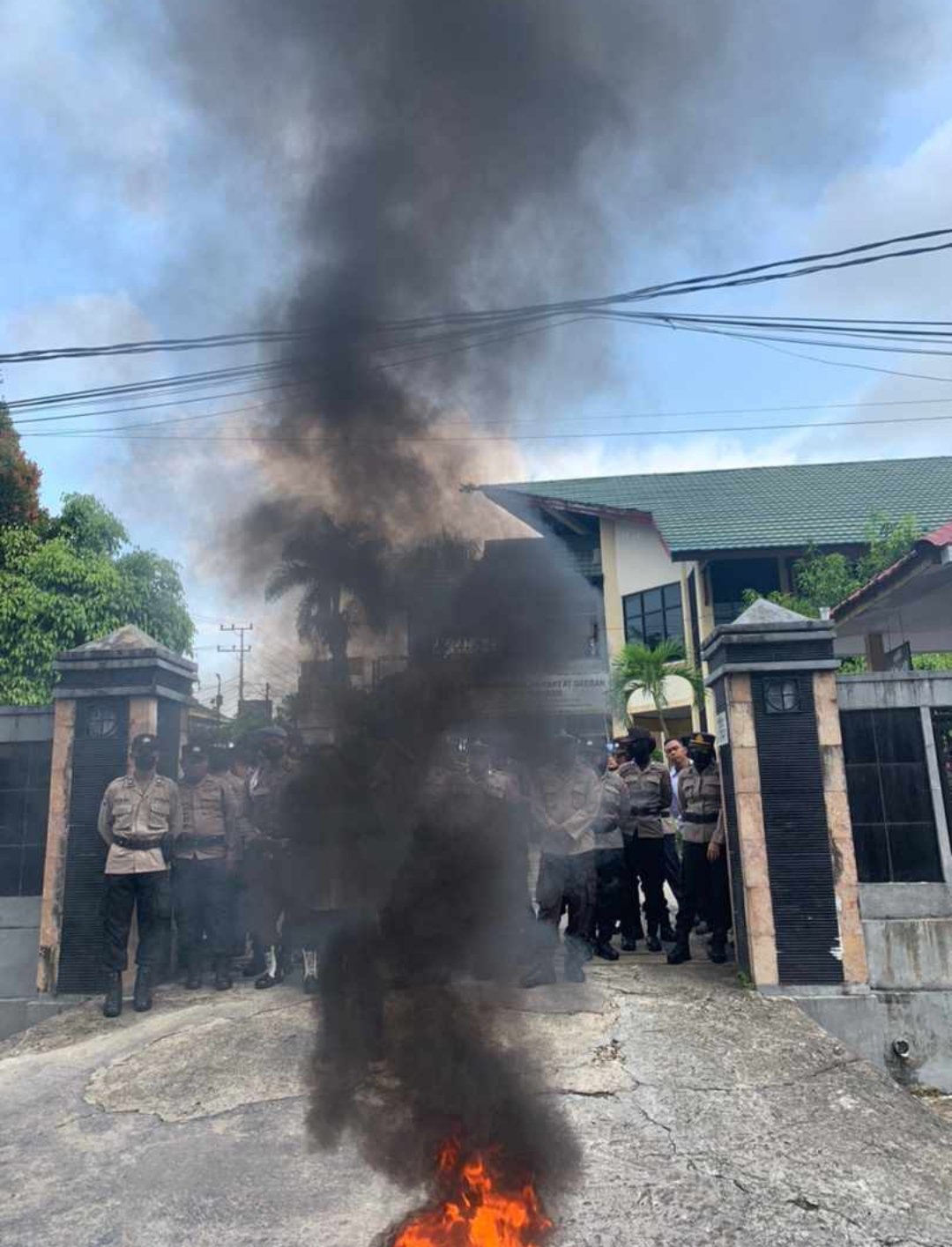 TARAKAN – Puluhan aliansi mahasiswa yang mengatasnamakan Gerakan April Melawan (Geram) kembali melaksanakan unjuk rasa pada Senin tanggal 17 April 2023 Pukul 10.00 Wita, yang berlangsung di Kantor DPRD Kota Tarakan Jl. Jend. Sudirman Kel. Pamusian kec. Tarakan tengah kota tarakan sejumlah personel polres tarakan melaksnakan pengamanan Aksi Unjuk rasa jilid II tersebut. Korlap Aksi GERAM Iqbal Fauka menerangkan, pihaknya terus berupaya memperjuangkan hak pekerja. Sehingga pihaknya mendesak agar DPRD Tarakan menyetujui petisi agar UU Ciptaker dicabut. Hal itu karena UU Ciptaker dianggap merugikan pekerja.