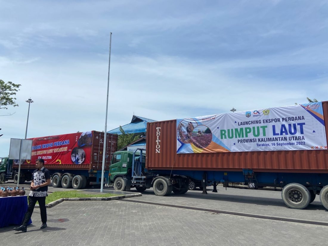 TARAKAN – Sebanyak 52,4 ton produk rumput laut untuk pertama kalinya diekspor ke Vietman melalui Pelabuhan Malundung, pada Jumat (16/9/2022) kemarin. Diketahui rumput laut tersebut berasal daru hasil UMKM Nunukan, provinsi Kaltara.