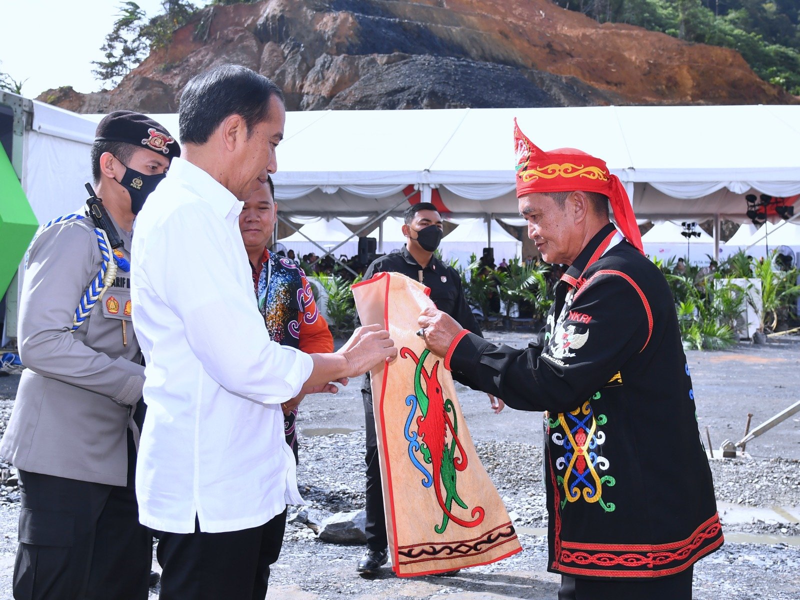 Turut mendampingi Presiden dalam kegiatan tersebut antara lain Menteri Koordinator Bidang Kemaritiman dan Investasi Luhut Binsar Pandjaitan, Menteri Investasi/Kepala BKPM Bahlil Lahadalia, Sekretaris Kabinet Pramono Anung, Gubernur Kalimantan Utara Zainal Arifin Paliwang, Bupati Malinau Wempi W. Mawa, Ketua Konsorsium Indonesia Garibaldi Thohir, dan Presiden Direktur PT Kayan Patria Pratama Juanda Lesmana.