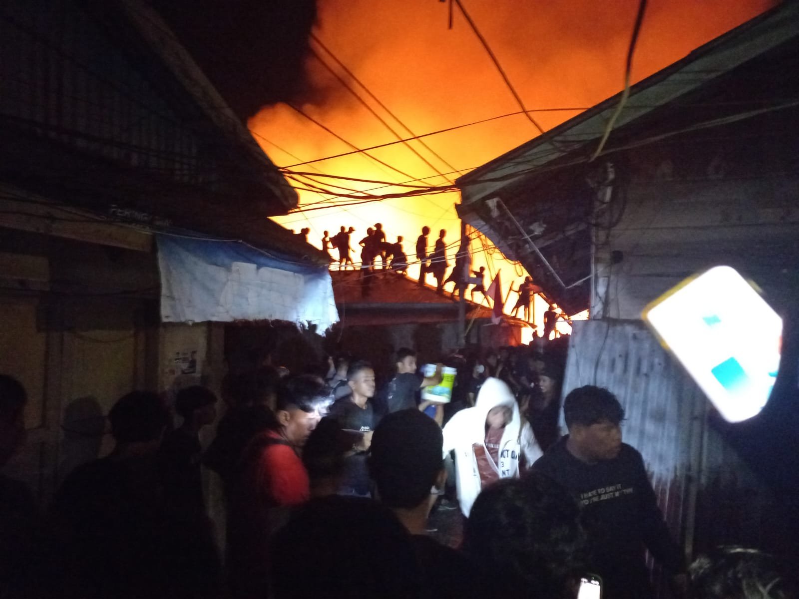 “Kira – kira jam dua subuh, begitu keluar rumah api sudah besar. Bangunan rumah di lokasi kebakaran kebanyakan semi permanen dan jalan sempit yang merupakan pemukiman di atas air,”tukasnya.