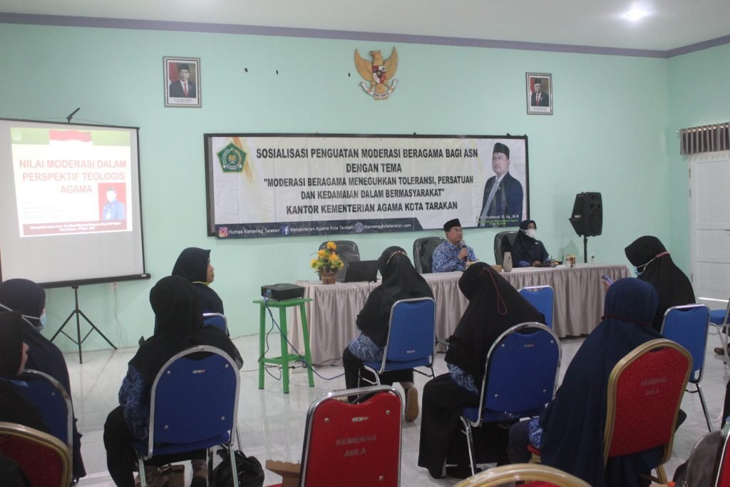 TARAKAN – Sebagai wujud mempererat toleransi masyarakat, Kantor Kementrian Agama Kota (Kemenag) Tarakan melakukan sosialisasi moderasi antar umat beragama pada Kamis (17/03/2022) di tubuh Aparatur Sipil Negara (ASN). Kegiatan berlangsung cukup khidmat dan dihadiri oleh seluruh perwakilan agama.