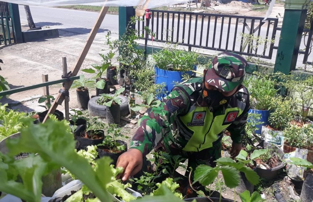 Tarakan – Berbekal bahan – bahan bekas seperti karung,galon,ember cat dan bekas tempat minyak goreng,Serma Suprianto Babinsa Koramil 0907/02 Tarteng mengubah lahan sempit dipekarangan rumahnya menjadi lahan produktif guna memenuhi kebutuhan sehari – hari.