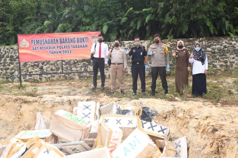 Kapolres Tarakan AKBP Ronaldo Maradona T.P.P Siregar S.H., S.I.K menjelaskan barang bukti yang dimusnakan hari ini merupakan barang bukti dari pengungkapan kasus oleh unit tindak pidanan tertentu sat reskrim polres Tarakan, yang terjadi di Jembatan Besi RT 11 Kel. Lingkas Ujung Kec. Tarakan Timur Kota Tarakan pada hari senin (08/02/2023) lalu. Dalam pemusnahan barang bukti tersebut dihadiri oleh perwakilan dari Kejaksaan Negeri Tarakan, Perwakilan dari Pengadilan tarakan, dan juga perwakilan dari pengawasan sumber daya kelautan dan perikanan kota tarakan.
