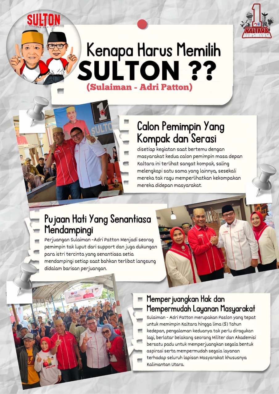 Dengan semakin menguatnya dukungan masyarakat, pasangan “SULTON” diyakini mampu menjadi solusi atas berbagai tantangan yang dihadapi Kaltara saat ini. Warga berharap mereka dapat membawa provinsi ini menuju perubahan yang lebih baik, maju, dan berkelanjutan.