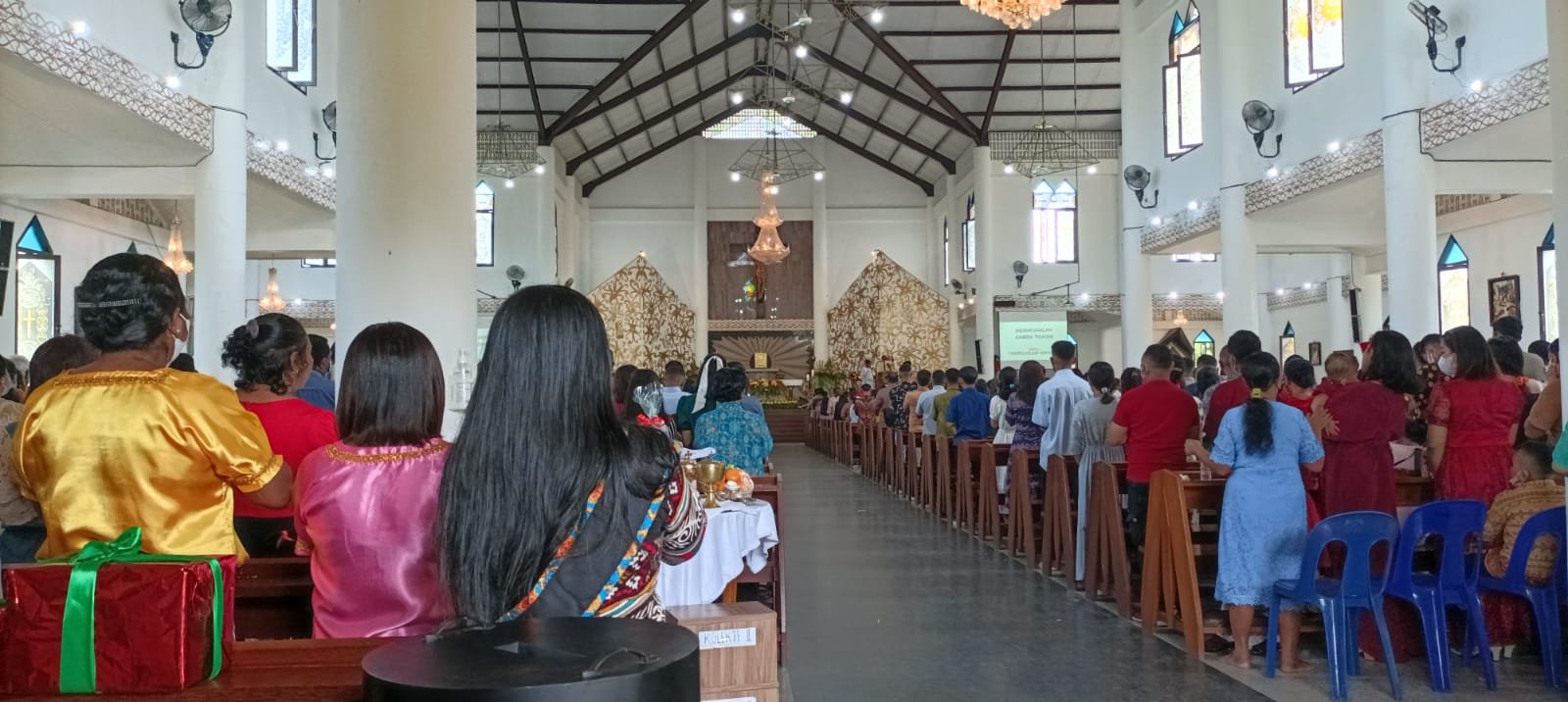 Pastor Antonius menyebutkan, jemaat Katolik dalam perayaan besar seperti ini biasanya meningkat. Karena mereka dari luar pulau, pedalaman juga ada kembali liburan Natal dan rayakan misa dua kali ibadah.
