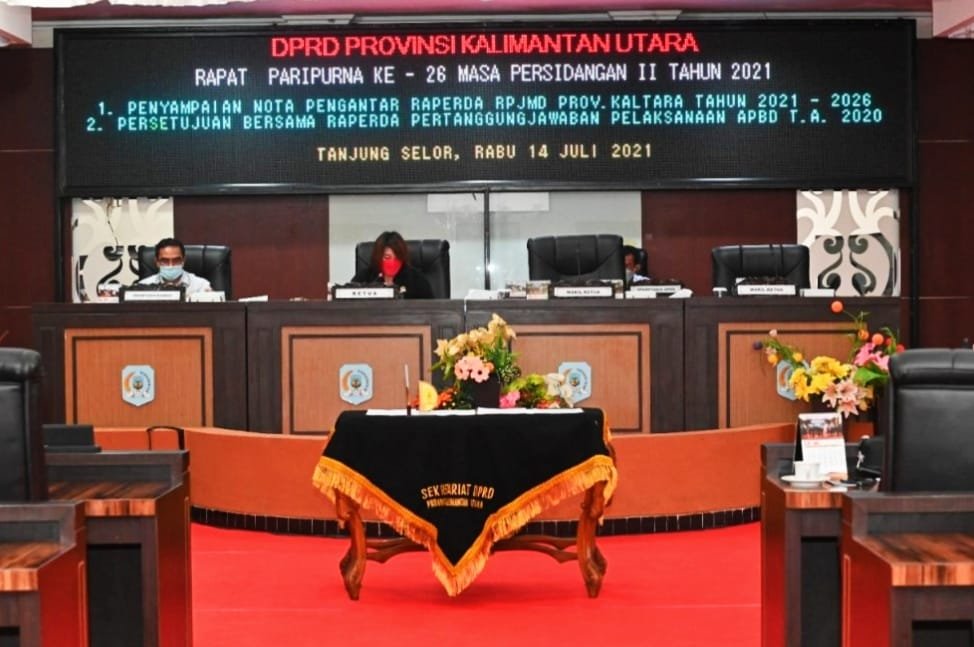 TANJUNG SELOR – Mewakili Gubernur, Sekretaris Daerah Provinsi Kalimantan Utara (Kaltara) Suriansyah menghadiri Rapat Paripurna ke-26 masa persidangan ke-2 tahun 2021 pada Rabu, (14/7) di Ruang Rapat Paripurna DPRD, Tanjung Selor.