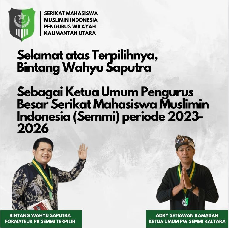 Setelah serangkaian proses, Bintang Wahyu Saputra terpilih dalam Kongres SEMMI ke-VIII sebagai Ketua Umum Pengurus Besar SEMMI periode 2023-2026. Empat Cabang dan Pengurus Wilayah Kaltara yang hadir mendukung dan mengucapkan selamat atas terpilihnya Ketua Umum PB SEMMI Bintang Wahyu Saputra.