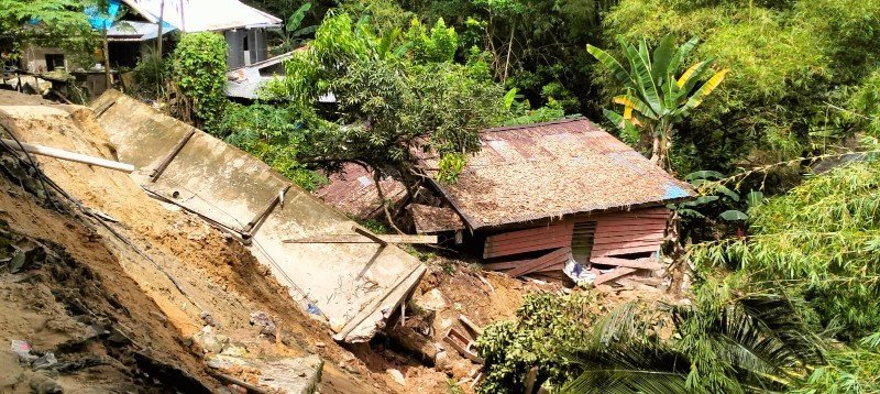 Ia menjelaskan, sebenarnya terdapat lima rumah terdampak longsor. Namun satu diantaranya merupakan rumah kosong. Dan paling parah terdampak karena tertimpun material hingga pokok pohon bambu.
