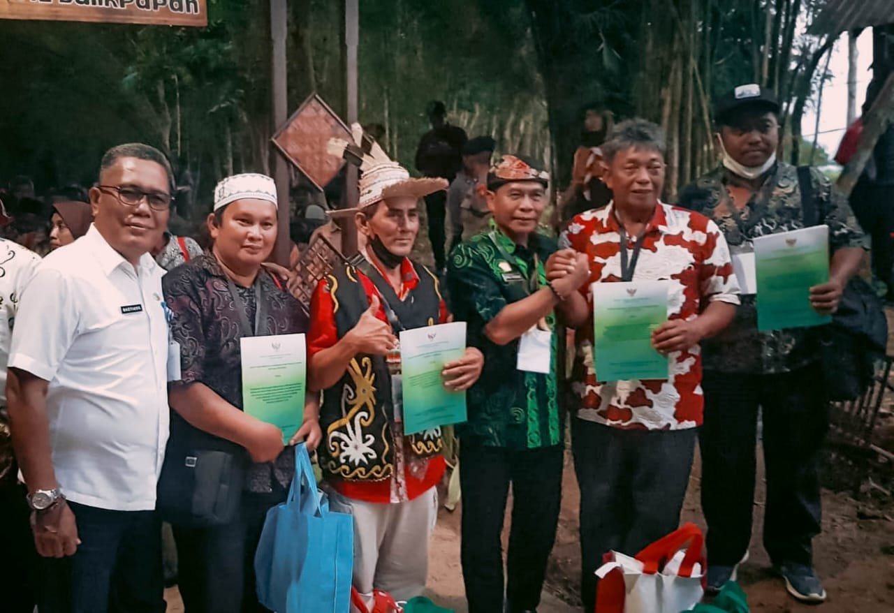 Balikpapan (22/02/2023), sebagai manifestasi dukungan dalam menjaga produktivitas sektor kehutanan, Presiden Republik Indonesia, Ir. H. Joko Widodo menyerahkan Surat Keputusan (SK) Perhutanan Sosial dan SK Tanah Obyek Reformasi Agraria (TORA) secara daring yang diikuti 17 Provinsi di Indonesia dan secara faktual menyerahkan 272 SK Perhutanan Sosial dan 30 SK TORA di Provinsi Kalimantan Timur untuk region Kalimantan.