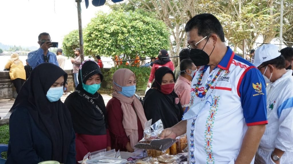 TANJUNG SELOR – Di Festival Sungai Kayan yang digelar Pemkab Bulungan, Wakil Gubernur Kalimantan Utara Dr Yansen TP Msi menyempatkan mengunjungi tenan gelar produk pangan dan nonpangan UMKM Kabupaten Bulungan di kawasan Kampung Arab, Jalan Jenderal Sudirman, Tanjung Selor, Selasa (19/10/2021).