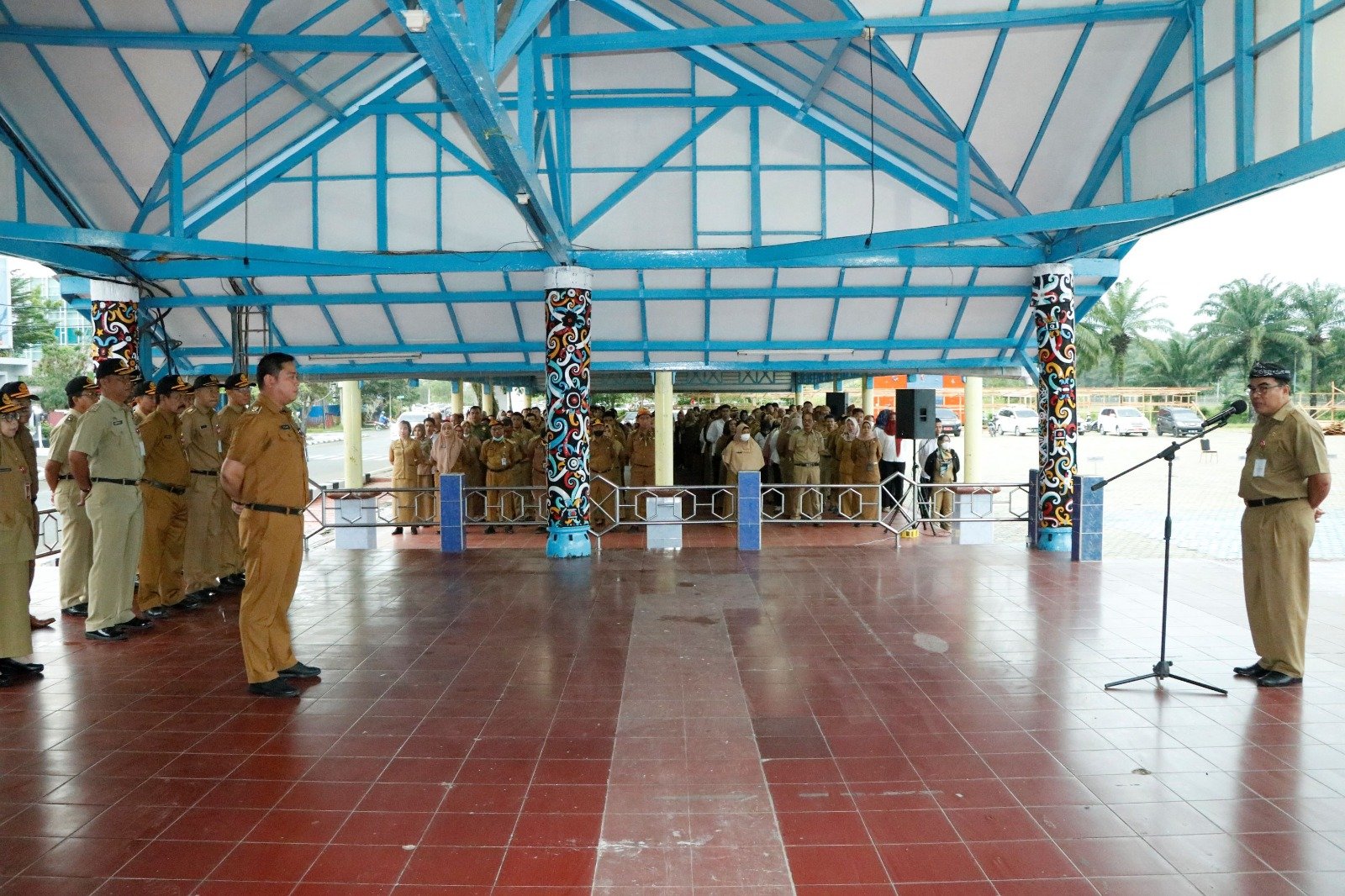 TANJUNG SELOR – Sekretaris Daerah (Sekda) Provinsi Kalimantan Utara (Kaltara), Dr. H. Suriansyah, M.AP., memimpin apel pagi gabungan di lingkup Pemerintahan Provinsi (Pemprov) Kaltara di Lapangan Agathis, Senin (16/10/23).