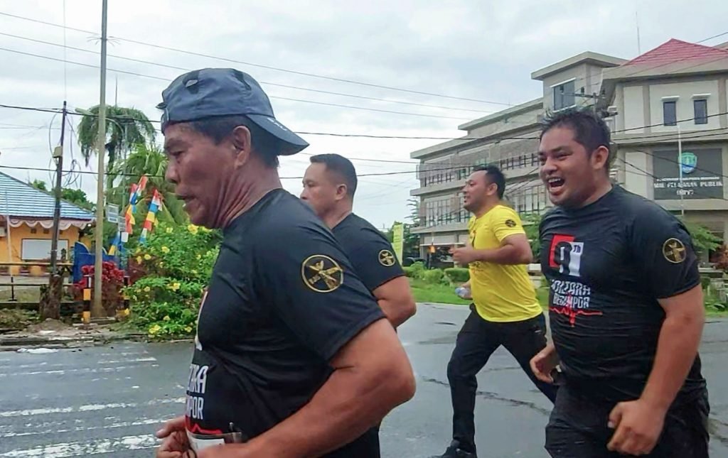 TANJUNG SELOR – Rangkaian memperingati HUT Kalimantan Utara yang ke-9, Pemprov Kaltara menggelar Kaltara Begimpor (berlari,red) 5 Kilometer dan 9 Kilometer, Sabtu (23/10). Gubernur Kalimantan Utara (Kaltara) Zainal A. Paliwang bersama sejumlah Forum Komunikasi Pimpinan Daerah (Forkompimda) turut memeriahkan kegiatan berlari tersebut dengan menempuh jarak 5 Kilometer. Tampak gubernur bersemangat berlari menerobos rintik hujan di dampingi Sekertaris Daerah Kaltara Suriansyah, Kadisdukcapil Sanusi, Kadis PMD Amir Bakry serta Staff Ahli Gubernur Edy Suharto. Dengan penuh semangat Gubernur beserta Forkompimda Kaltara bernyanyi dan bersorak menuju garis akhir.