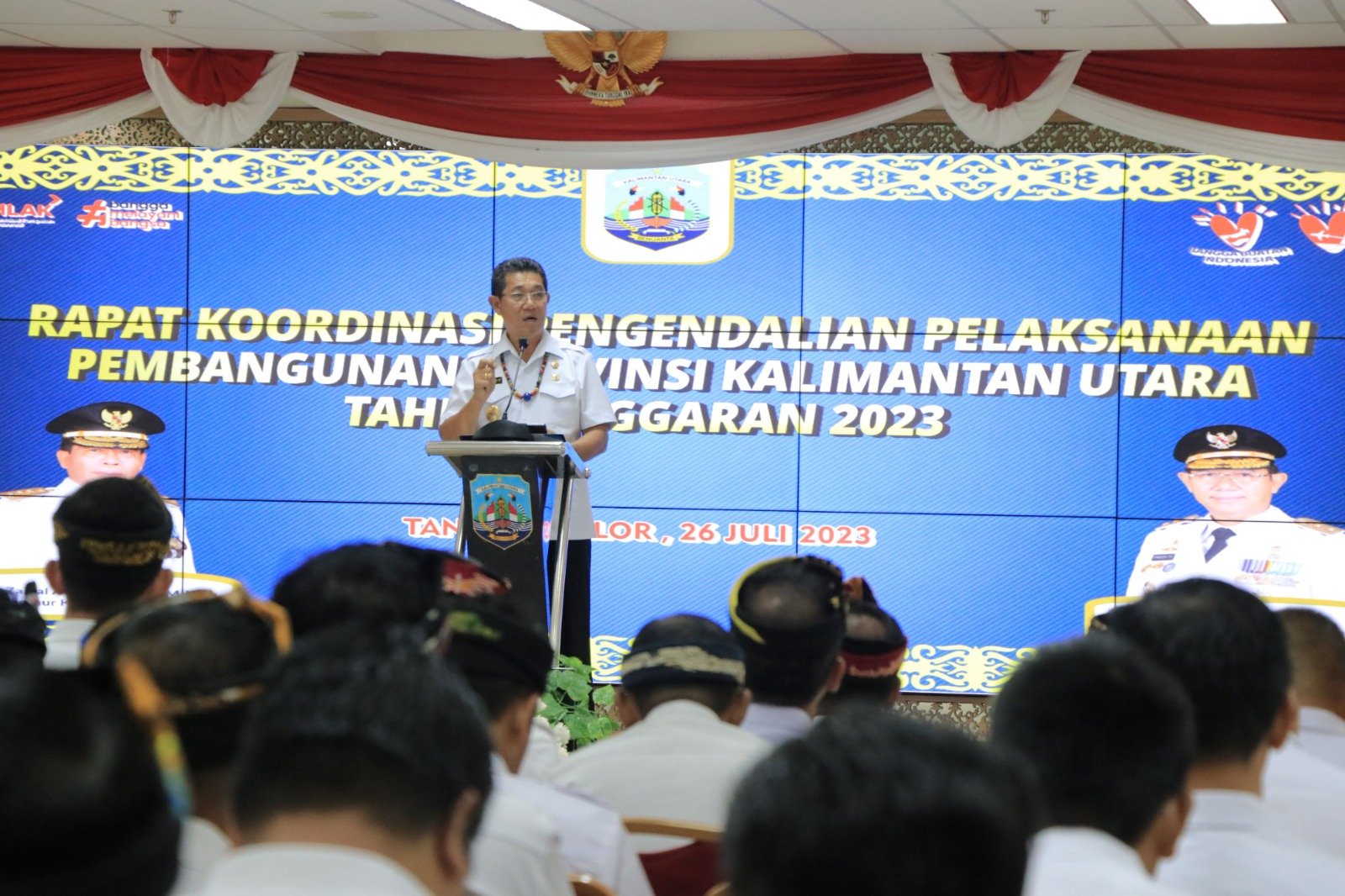 TANJUNG SELOR- Wakil Gubernur (wagub) Dr Yansen TP, M.Si membuka kegiatan Rapat Koordinasi Pengendalian Pelaksanaan Pembanguan Provinsi Kalimantan Utara, Kamis (26/7).