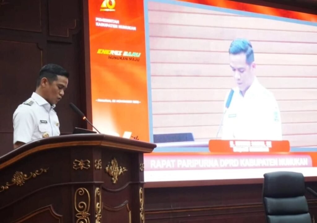 Nunukan – Bupati Nunukan H. Irwan Sabri, S.E. menyampaikan jawaban Pemerintah Daerah atas pandangan umum fraksi-fraksi DPRD Kabupaten Nunukan terhadap Rancangan Peraturan Daerah (Raperda) pembentukan tiga desa baru, yakni Desa Ujang Fatimah, Desa Binusan Dalam, dan Desa Tembaring.