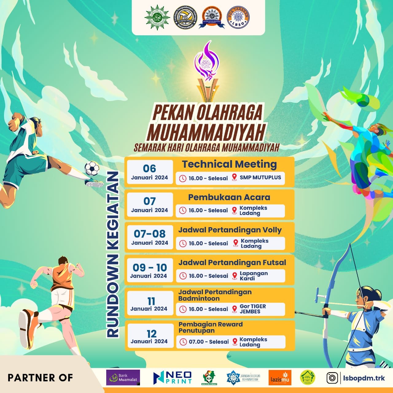 Dalam kegiatan ini, beberapa cabang olahraga dipertandingkan, yaitu badminton, futsal, dan voli. Menurut Fakhry, kompetisi ini tidak hanya bertujuan untuk meningkatkan kemampuan olahraga, tetapi juga untuk mempererat persaudaraan antarwarga Muhammadiyah.
