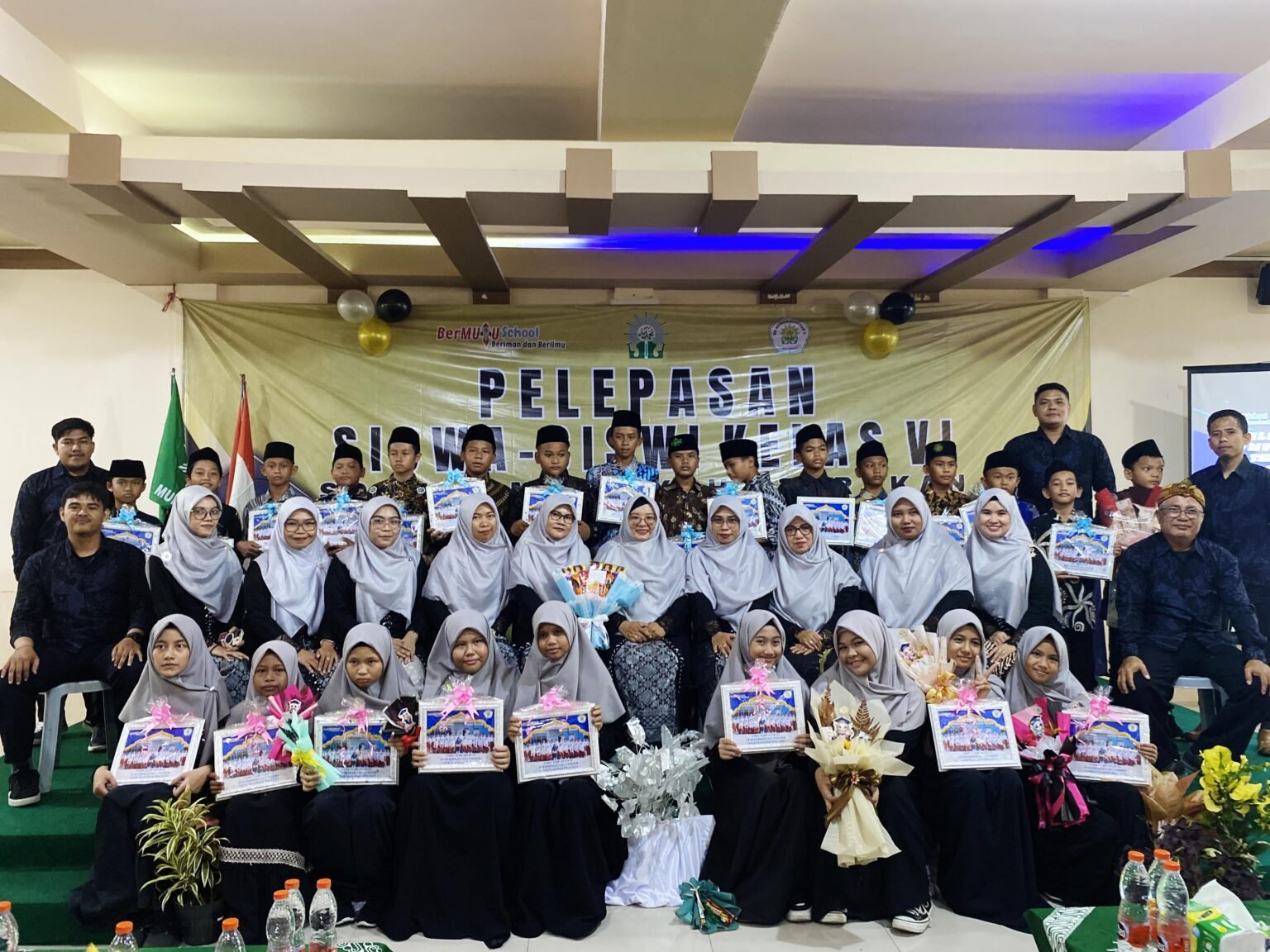Tarakan – Suasana Bahagia campur haru menyertai pelepasan Siswa siswi kelas 6 SD Muhammadiyah 1 Tarakan. Sebanyak 25 siswa-siswi yang terdiri dari 6 Perempuan dan 16 Laki-laki kelas 6 SD Muhammadiyah 1 Tarakan yang dinyatakan lulus secara resmi diserahkan kembali kepada orang tua wali siswa dalam acara pelepasan siswa Tahun Pelajaran 2023/2024 di Aula Gedung Panti Putri Melati, Sebengkok Waru, Tarakan, Sabtu (25/5/24).