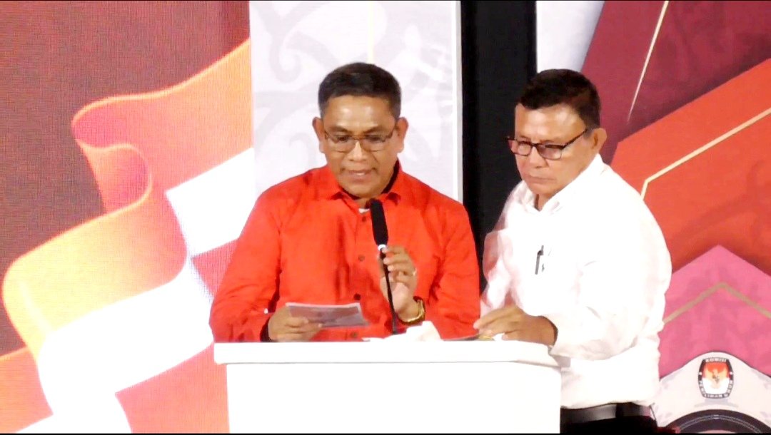 Pada Debat Perdana Yang Di Selenggarakan Komisi Pemilihan Umum Kpu Provinsi Kalimantan Utara Pasangan Calon Gubernur Dan Wakil Gubernur Pilkada Tahun 2024, Di Laksanakan Di Atarakan Art Convention Center, Rabu (09/10/20240.
